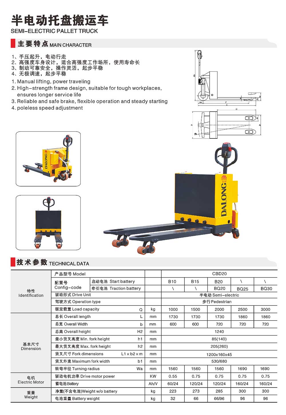 CBDB半電動托盤搬運(yùn)車