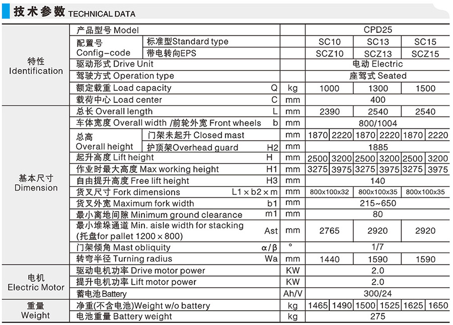 CPDSC 標(biāo)準(zhǔn)型電動叉車(三支點,標(biāo)準(zhǔn)型)