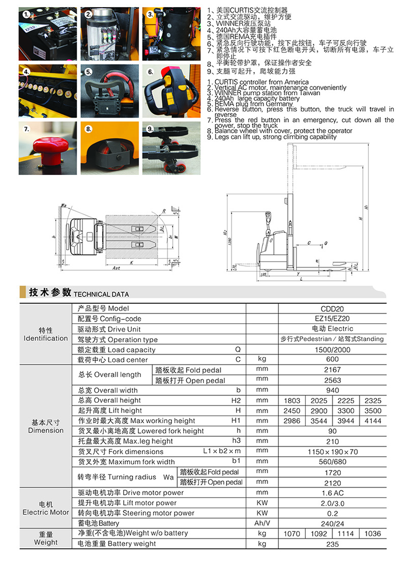 CDD20-EZ雙托盤全電動(dòng)堆垛車